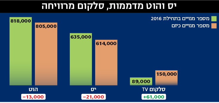 הנפגעות המיידיות הן הוט ויס, שהשירותים החדשים מסתערים על מאגר הלקוחות הקבוע שלהן. כבר עכשיו הן "מדממות מנויים" מדי חודש. במהלך 2016 הן איבדו ביחד כ־34 אלף מנויים (יס 21 אלף והוט 13 אלף). יחסית למצבת המנויים הענקית שלהן (להוט 805 אלף מנויים וליס 614 אלף) זה נראה כזרזיף, אבל מניסיון העבר בסלולר – הוא עלול להפוך לנהר גועש. סלקום TV, בינתיים, צוברת תאוצה, והגיעה ל־150 אלף מנויים. החברה גייסה ב־2016 כ־48 אלף מנויים חדשים, ועוד כ־13 אלף ברבעון הראשון של 2017. פרטנר תשמח להישג דומה.