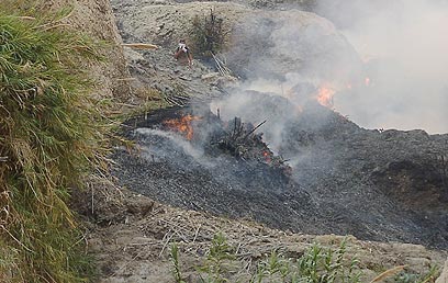 גם עכשיו, כמעט 24 שעות אחרי שפרצה, בוערות בשמורת נחל דוד שבעין גדי נקודות מעשנות ולא מעט אבנים מממשיכות להתדרדר מן המדרון.