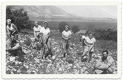 חברי שער העמקים בעבודת נטיעות בגבעות שיך אבריק (1940):