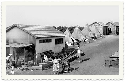 בקיבוץ החדש מוקם חדר אוכל. בתצלום למטה: מובילים מים ליישוב.