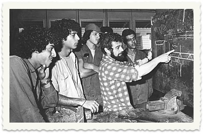 החברה רינה פלג, מפסלת בקרמיקה (1970). בתצלום למטה: אברהם ברנד מדריך בני ההכשרה הצעירה (1979)