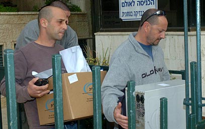 חוקרי המשטרה עם החומר והמחשבים שנתפסו (צילום: אבי כהן)