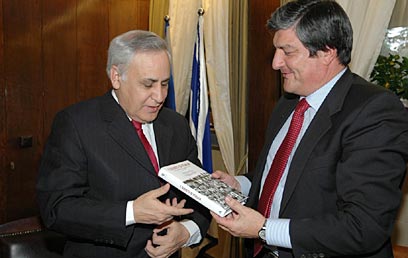 השגריר דה-ברנדין מעניק את הספר לנשיא קצב