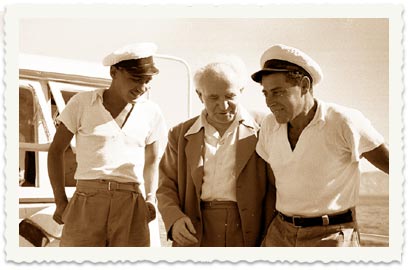 הימים ימי ראשית המדינה. בן גוריון יוצא לסיור מסביב ובתוך ימת הכנרת. פולה אשתו, נחמיה שלישו, החברים קולק ויהודה שרת, וגם הצלם נפתלי אופנהיים, מתלווים לטיול שהונצח בשחור-לבן