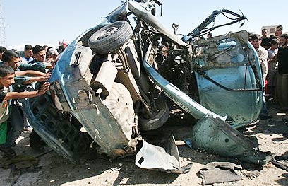 פעולת ההתנקשות שבה נהרגו שלושה פלסטינים (צילום: איי.פי)