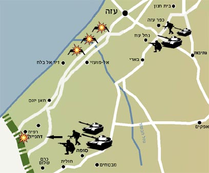 צפונית לרצועה - וממתינים לפקודה. שחרורו של החייל, רב-טוראי גלעד שליט, עומדת כרגע בראש מעייני הצבא והדרג המדיני, ואולם מבצע "גשמי קיץ" - שצפוי להיות ממושך - שם לו למטרה גם את ירי הקסאמים הבלתי פוסק לעבר שדרות ויישובי הנגב המערבי.
