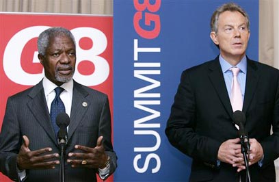 בלייר ואנאן במסיבת העיתונאים (צילום: איי.פי)
