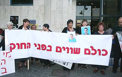 הפגנת ההורים השכולים מחוץ לבית המשפט (צילום: עופר עמרם)