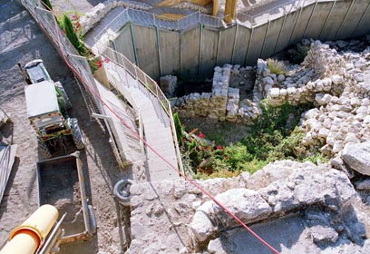 כיפתו של מסגד אל אקצא מתנוססת ממעל. אזור החפירות (צילום: יאן לוי)