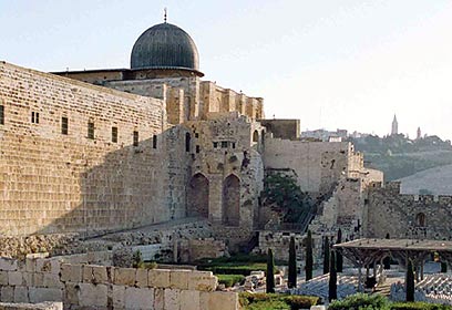 נשוב על עקבותינו לכיוון מרכז המבקרים, ואם נרצה להתרשם שוב מהודו של האתר נתקדם מעט מזרחה, לאורך הכותל הדרומי שמעליו מתנוססת הכיפה השחורה של מסגד אל אקצא. התקופה הנוספת המיוצגת באתר היא האיסלמית הקדומה (638 עד 1099 לספירה). במהלך החפירות בגן הארכיאולוגי נחשפו ארבעה מבנים מקריית השלטון שבנו כאן הח'ליפים מביית אומייה.
