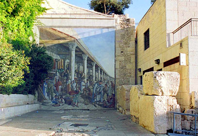 מרכז התצוגה החדיש ממוקם בחללים תת-קרקעיים של אחד ממבני הציבור האומיים שנחשפו בגן. מסלול הסיור בו מתחיל על כבש עץ ששיפועו מתון ונוח, המוליך לעומק של 10 מטרים מתחת לפני השטח. במהלך הירידה חולפים על-פני תצוגה המתעדת את מאפייניה של העיר לתקופותיה, מהעידן הכנעני והישראלי הקדום, דרך הצלבנים, הממלוכים ועד העות'מנים. המרכז כולל ממצאים ארכיאולוגיים, סרט על חוויית עולי הרגל ומודל של הר הבית כפי שניצב במלוא הדרו בימי הבית השני.