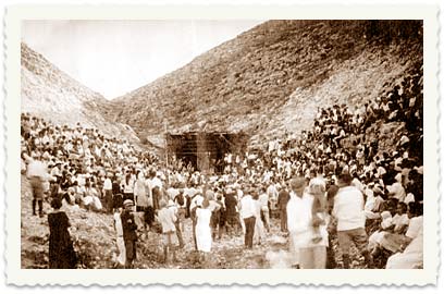 מחנה החלוצים ליד הנחל. העולים להתיישבות, חברי גדוד העבודה ע"ש טרומפלדור, ידעו שנים קשות בעמק. הנביעות לאורך הגלבוע ונחל חרוד, זרמו בצורה פראית וייצרו ביצות, ואת הביצות הציפו יתושי מלריה.