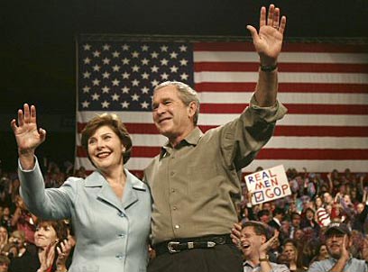 הנשיא בוש ורעייתו לורה, בעצרת בחירות בפלורידה, אתמול (צילום: רויטרס)