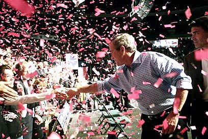 בוש בעצרת תמיכה, אמש. יתקשה לממש את תוכניותיו (צילום: איי.פי)