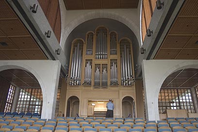 ניכנס חזרה ונפנה אל האודיטוריום המשמש גם כאולם קונצרטים. האולם בצורת תיבת זכוכיות שכל מטרתה לאפשר לאור השמש להכנס אל האולם מכל כיוון. כמובן שחלונות הזכוכית בקדמת הבמה פונים לכיוון העיר העתיקה. אחת לשבוע, בימי א' בשעה 20:00, מתקיים כאן, באולם המכיל 334 מקומות ישיבה, קונצרט חינם על רקע אורותיהָ של העיר. העוגב הענק שבחלקו העליון של האולם נתרם בידי תורם אנונימי בעלות של כחצי מיליון דולר. העוגב נבנה והגיע לכאן ישירות מדנמרק ונחשב לגדול שבמזרח התיכון. לא פחות מ-3,000 חלילים מרכיבים אותו. במהלך סיור במקום עם קבוצה מצפה לכם קונצרט קצרצר ומרשים בחסותו של העוגב המרשים.