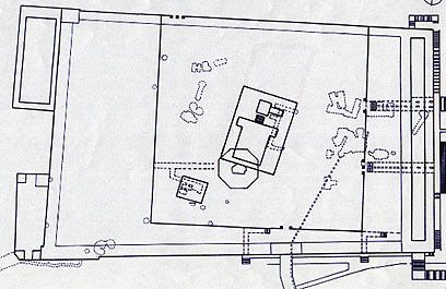 מיקום המקדש בהר הבית ומפת בורות המים (שרטוט: לין ריטמאייר)