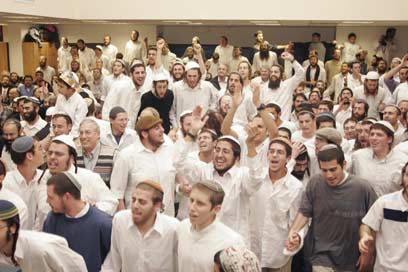 בליל התרבויות הזה, עליו סיפר בנאי בטקס חנוכת משכן הקבע בישיבת ההסדר ברמת-גן, הוא רק טעימה קטנה מהרכב החוגגים הססגוני שנכח באירוע ביום ראשון השבוע: ספרדים ואשכנזים, דתיים וחילוניים, כיפות סרוגות, שחורות, וגם צמר, ברסלב וחב"ד, מזוקנים ומגולחים, עולי אתיופיה, רוסיה וגם צברים, תלמידי ישיבה צעירים וזקני העיר ר"ג, אוהדי מכבי רמת עמידר ובטח גם צעירים מהשכונה – כולם באו להשתתף באירוע המרגש במיוחד שהתקיים ביום ראשון השבוע. רק כמה ליטאים לרפואה קשה היה למצוא בין מאות החוגגים בישיבה החסידית.
