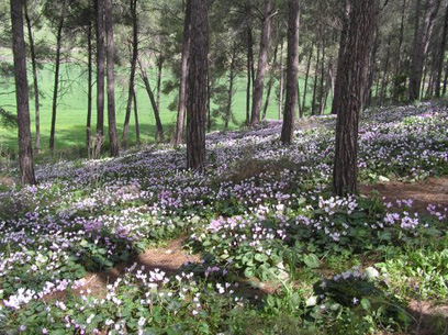 מזג האוויר שלמחרת היה סגרירי מה שהשווה לכל האיזור אווירה אנגלית משהו. נפרדנו לשלום מבקתתנו החביבה (לא לפני שווידאנו שכל גיבורי העל שהתלוו לנסיעה נאספו ונארזו) והלכנו לכבוש את גבעת הרקפות. אין כמו לטייל ביום ראשון - היינו כמעט לבדנו במקום ויכולנו ליהנות בשקט ובשלווה מכל אותם מרבדי רקפות מפורסמים. גם כאן אירגנה לנו קק"ל מסלול הליכה מעגלי באורך של 600 מטר (כחצי שעה הליכה).