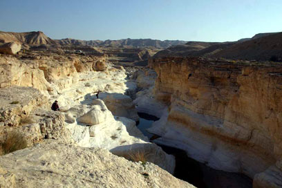 הגבים היו מלאים במים, הגיר היה לבן ונפלא והמדבר פרח כמו שהוא פורח עכשיו. כמה יפה. הצין זרם בעוז כשגלשנו את הירידה אל האפיק, עוברים על פני גבי צין שהיו מלאים בהמון המים שירדו פה השנה ואנחנו המשכנו בשביל המסומן במורד הנחל אל גבי בהק - מצוק לבן נפלא וצר שמים סואנים זורמים דרכו אבל אי אפשר לשחות בהם כי הם מלאים בזיהום של מפעלי הפוספסטים, אותם חומרים מסרטנים שזורמים בנחל.