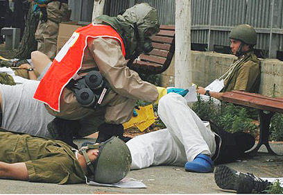 תרגיל השתלטות ופיגוע כימי ברמת-גן (צילום: ניב קלדרון)
