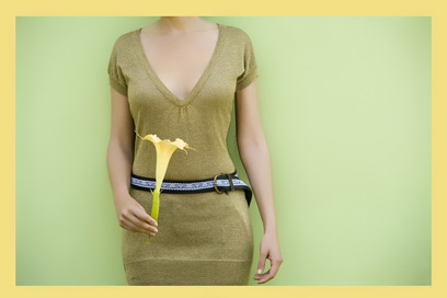 אם חסרה לכן חגורה בצבע מסוים, קנו בד סאטן באורך כפול מהיקף המותניים שלכן ועוד 20 ס"מ. לפפו את הבד פעמיים מסביב למותניים, וקשרו בקשר פרפר בצדי הגוף.