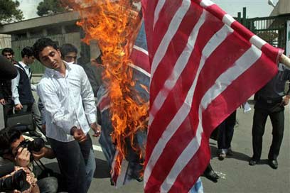 חוגגים בטהרן: סטודנטים שורפים את דגל ארה"ב (צילום: איי.פי)
