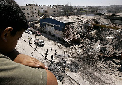 נער פלסטינים צופה על הריסות, אחרי תקיפת צה"ל (צילום: AP)