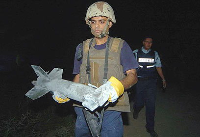 הרקטה שנחתה הלילה באחד הקיבוצים הסמוכים לשדרות (צילום: אבי רוקח)
