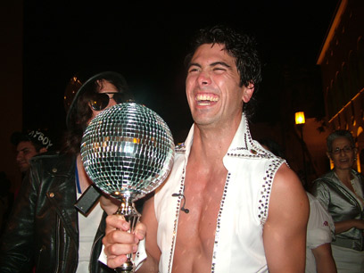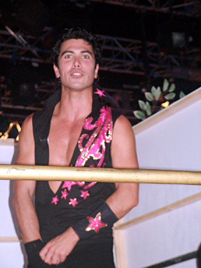 הנה מלך הרחבה, מסדר לעצמו את החבילה, רגע לפני השואו שלו. "כואב לו השריר", היה התירוץ של המפיקה שצפתה אף היא באקט האקסטרווגנטי.