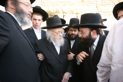 הרב אלישיב בכותל (צילום: אביעד בטר)