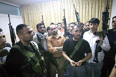 אנשי החמאס שנחטפו בשכם, יחד עם החוטפים (צילום: AFP)