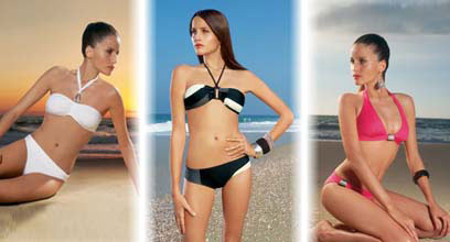 אינטימה: גם פה אפשר לשלב בין מידות ובין דגמים. חזיות קולר הנקשרות מקדימה בסרט אורזות היטב את החזה. תחתונים חתוכים בנדיבות בצדדים מכסים יפה את העכוז. הבדים נעימים במיוחד למגע וגם עבים יותר מהמקובל (כלומר עמידים יותר בפני פגעי כלור ומלח). הצבעים מעודנים ולא צעקניים.