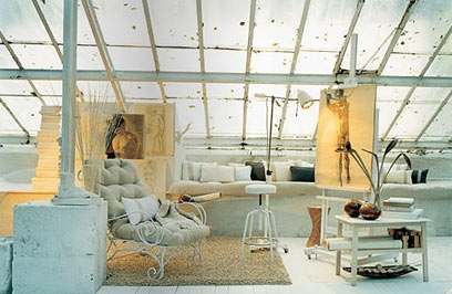 רצפת גלריה מעץ צבועה בלבן היא הבסיס לבית חלומי, למי שבאמת לא מפחד מלבן.