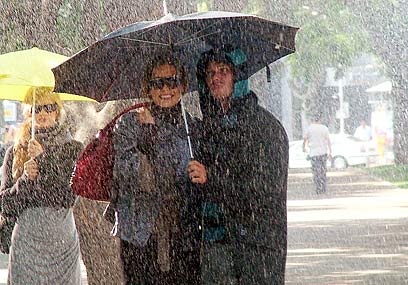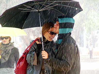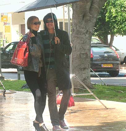 שנינו יחד תחת מטריה אחת. אלוהים תעשה שיהיה קצת קריר