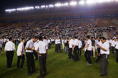 פורצים אל הדשא, אחרי המופע של פריד ושוואקי (צילומים: ישראל ברדוגו)