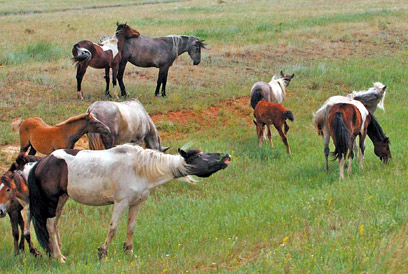 בצידי הכביש מתחלף הנוף בין משטחי מרעה נרחבים לחורשות דלילות. מדי פעם חולפים עדרים של סוסי פרא, וקשה שלא להתפעל מהחירות המוחלטת שבה הם דוהרים. בייחוד שמתחוור לנו שהם עתידים לגמור אצל הכפריים עמוק בצלחת.