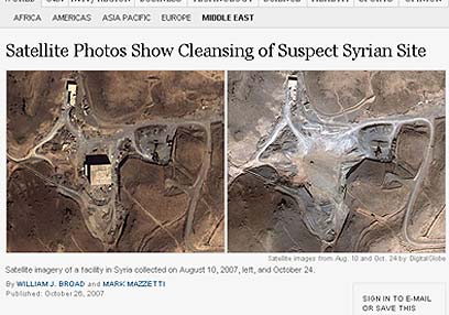 מתצלומי לוויין שפורסמו אמש ב"ניו יורק טיימס" עולה כי הסורים ככל הנראה העלימו מעל פני השטח את המבנה שהופצץ בתקיפה הישראלית בחודש שעבר. מומחים אמריקנים: "מדובר בקסם של ממש - אתמול פה, היום לא"