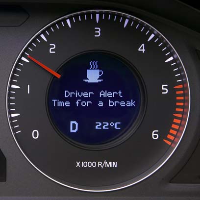 מערכת יחודית שפיתחה וולוו, נועדה למנוע מצבים אלו בדיוק. המערכת מנטרת את מיקום המכונית ביחס לפסי הסימון של הכביש. אם הרכב נע באופן לא אחיד לימין ולשמאל, המערכת מבינה כי יש סכנת חוסר ריכוז, ומתריאה בפני הנהג. בתחילה רק בהתראה ויזואלית על לוח השעונים, באמצעות גרף שהולך ונעלם. כשכל הקוביות בגרף נעלמות, נשמע איתות קולי והנהג מקבל התראה - "זמן להפסקה", יחד עם ציור של כוס קפה להמחשה. בוולוו אומרים כי מחקרים מוכיחים שאמצעי מעין זה, עשוי למנוע מצב בו עייפות על ההגה תהפוך להירדמות - ולתאונה קשה.