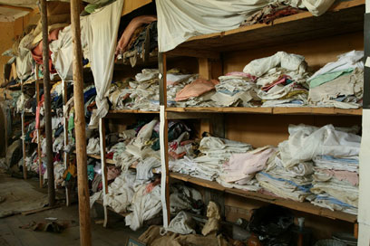 ערימות הבגדים בבית הכנסת של סוחרי התפוחים (צילום: נעמה פארן)