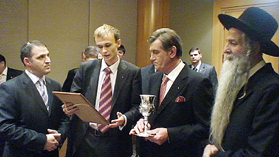 הנשיא האוקראיני, ויקטור יושנקו, פתח הערב (יום ג') את ביקורו בארץ במפגש חם עם חסידי ברסלב. נציגי ברסלב הרב דניאל דיין ממרכז ברסלב העולמי ועורך-הדין גלעד קורינאלדי המייצג את ברסלב במשבר הקבר, סיפרו בתום הפגישה כי הנשיא התחייב להגן על מתחם הקבר ובית הכנסת. החסידים מצידם העניקו לנשיא גביע כסף רב מימדים ובירכו אותו על התערבותו בפרשת סכנת העיקול המרחפת על מתחם הקבר באומן.