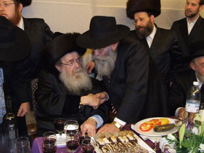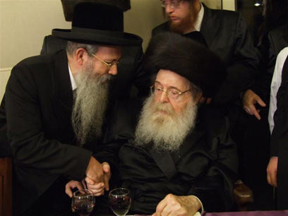 הרב גלויברמן עם האדמו"ר מסדיגורא בבר-המצווה (צילום: מ. מאמין)
