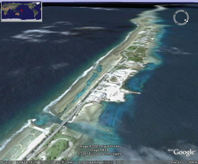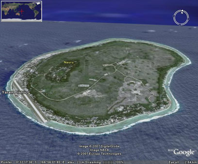 נאורו. 21 קמ"ר בלי עיר בירה (צילום לווין: Google Earth)