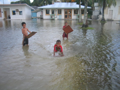 ילדים משחקים מול המכון המטאורולוגי של טובאלו (צילום: Tauala Katea)
