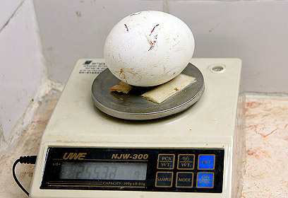 לאחר ששתי הביצים הגיעו ליעדן בשלום, הן נשקלו ונמדדו. "יש ביניהן הבדלים גדולים מאוד במשקל ובצורה - אחת שוקלת 255 גרם והשניה 199 גרם", גילה ידבב. "כל אחת תזכה לטיפול שונה כדי למנוע אובדן משקל ולחות".