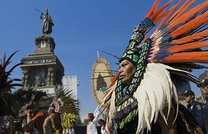 תושב העיר בלבוש אצטקי רוקד בכיכר (צילום: AFP)