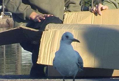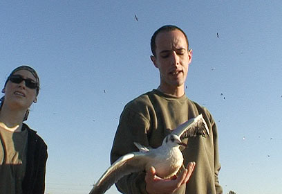 שמוליק לנדאו עוזר לשחף לחזור לטבע (צילום: אוהד אבידן-קינר)