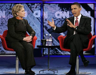 ראש בראש - קלינטון ואובאמה (צילום: AP)