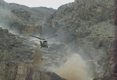 סוחף כל הנקרה בדרכו. מסוק חילוץ בנחל קומראן (צילום: מרב פאול)