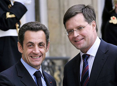 ראש הממשלה ההולנדי לצד הנשיא הצרפתי, היום (צילום: רויטרס)