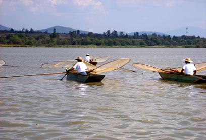 בדרך לאי ממתינות ספינות דייגים המדגימות את שיטת הדיג המוזרה שהיתה נהוגה באגם: שליית דגים בעזרת רשתות הנראות מרחוק ככנפי פרפרים. עבור ההצגה המרהיבה גובים הדייגים, בני השבט העתיק פורפצ'ה (Purepecha), מספר מטבעות.